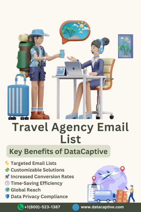 Target travel industry professionals with DataCaptive’s 100% verified, opt-in travel agency email list, perfect for launching successful tourism campaigns.