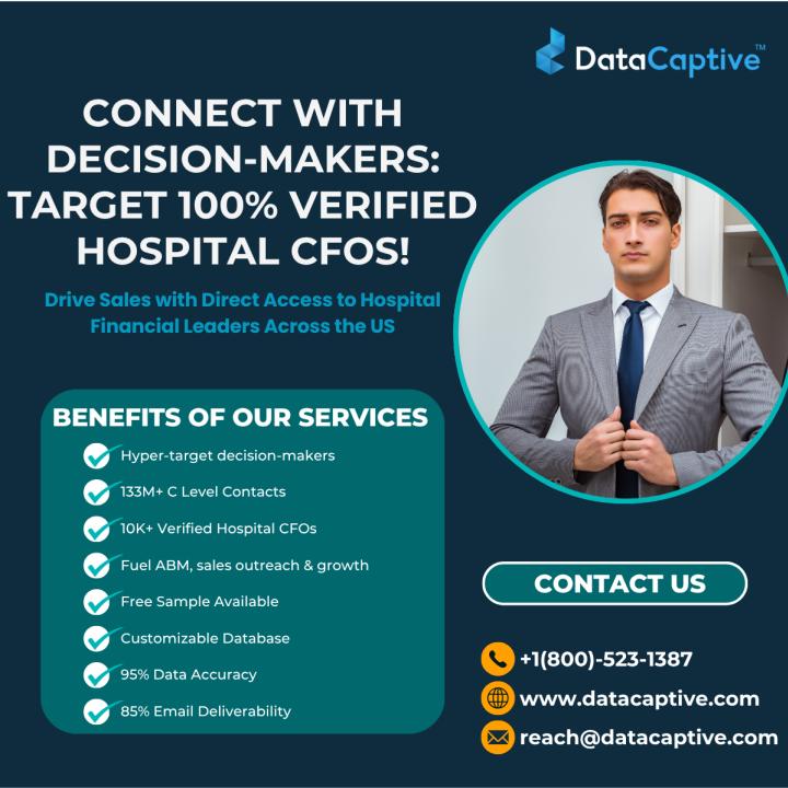 DataCaptive’s Hospital CFO Email List provides access to verified chief financial officers and financial executives in hospitals, healthcare systems, and medical networks. With 100% verified and opt-in contacts, this list..