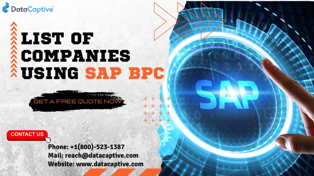 Target companies using SAP BPC (Business Planning and Consolidation) with DataCaptive’s SAP BPC Users Email List. This list is ideal for consultants, IT solution providers, and software vendors looking to..