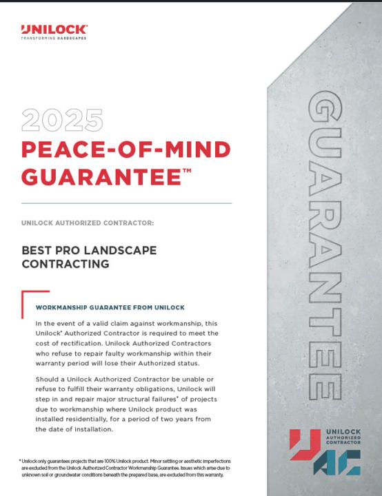 When you hire Best Pro Landscape for your project, you’re not just getting a beautiful design—you’re getting Unilock’s promise of quality.