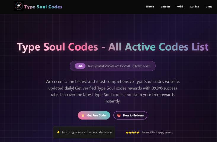 Type Soul Codes - All Active Codes ListLIVELast Updated: 2025/09/22 15:54:55 - 8 Active CodesWelcome to the fastest and most comprehensive Type Soul codes website, updated daily! Get verified Type..