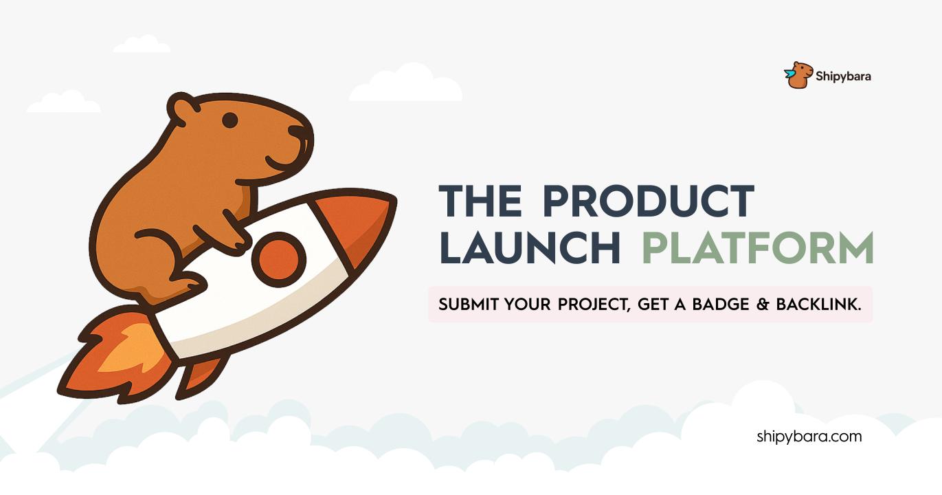 Shipybara is a new product launch and discovery platform built for creators, founders, and indie makers who want to showcase their startups and reach early adopters. It works similarly to Product Hunt but offers a simpler submission process, fresh visibility, and valuable SEO benefits.