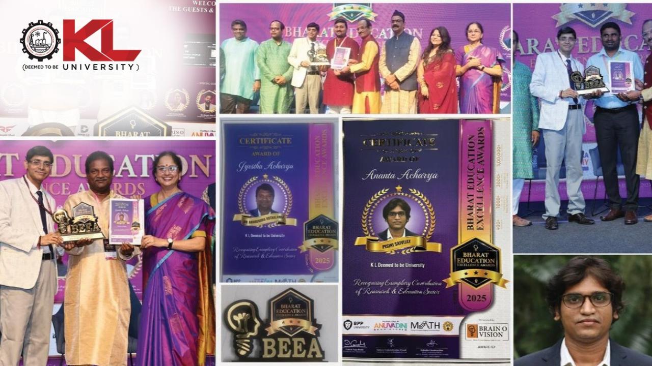 KL University added another feather to its hat, with six of its faculty members from Vijayawada and Hyderabad campuses being recognized at the Bharat Education Excellence Awards (BEEA) 2025. They were awarded for their exceptional contributions to teaching, research, and innovation. The ceremony, organized by Brain O Vision and hosted at T-Hub, Hyderabad, celebrates educators who are redefining the future of learning across the country.