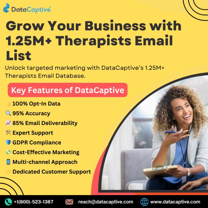 DataCaptive’s Therapists Email List is your key to unlocking new opportunities in the healthcare and wellness sectors.Our 100% verified and opt-in data ensures you can directly connect with licensed therapists,..
