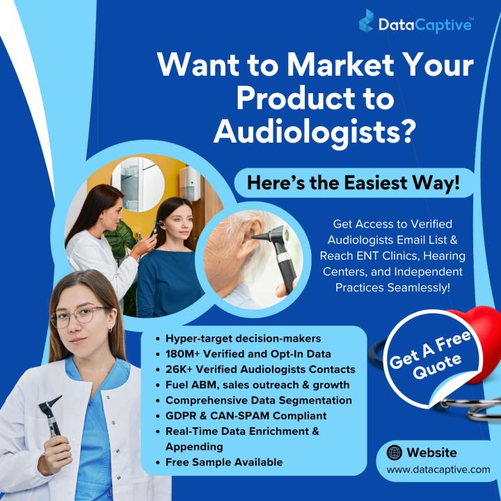 Marketing hearing devices, practice management software, or audiology equipment? DataCaptive’s Audiologists Email List allows you to reach certified audiologists across clinics, hospitals, and private practices.This curated and verified list includes..