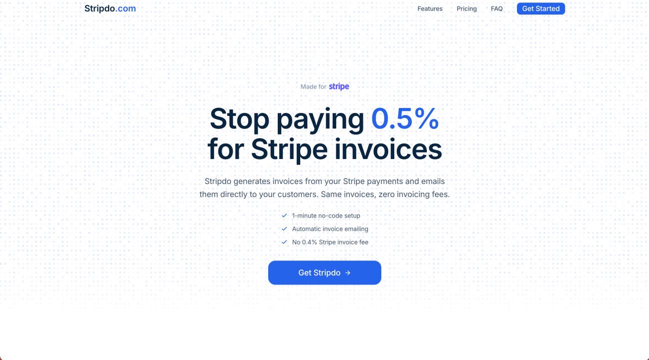 Stripdo is a SaaS (Software as a Service) product aimed at businesses using Stripe as their payment processor. While Stripe offers invoicing capabilities, it charges a fee—typically around 0.4% per invoice sent (capped at $2.00) on top of Stripe’s standard processing fees. Stripdo removes this additional cost by generating invoices outside of Stripe’s native invoicing system and emailing them directly to customers.