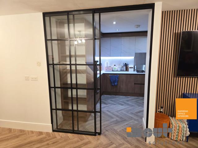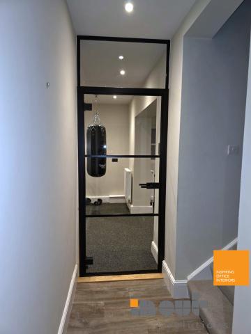 Project Summary – No 2 glass partition walls with framed glass doors, industrial >