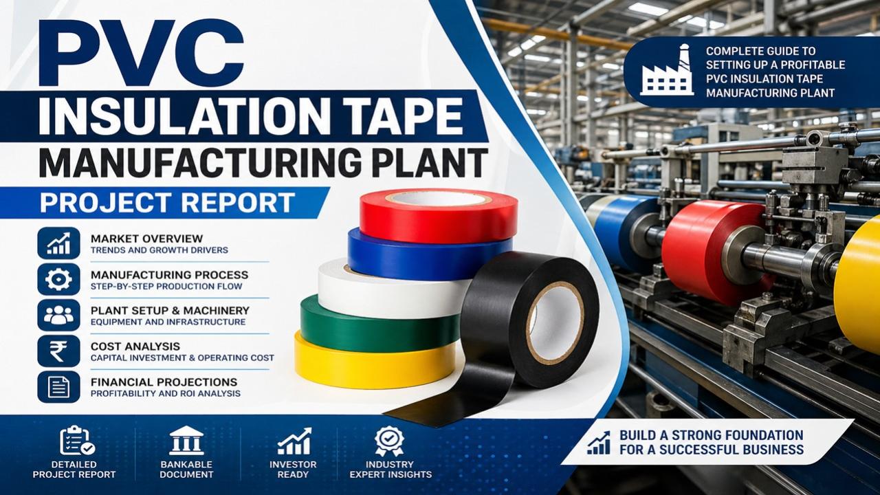Setting up a PVC insulation tape plant requires careful planning, including site selection, machinery installation, and raw material procurement. Key processes involve PVC compounding, film extrusion or calendering, adhesive coating, drying, slitting, and packaging. Essential raw materials include PVC resin, adhesives, release paper, and packaging materials. The plant also requires mixing, coating, rewinding, and packing machines. Additionally, businesses must focus on quality control, workforce planning, utilities, and regulatory approvals to ensure efficient production and compliance with safety and environmental standards.