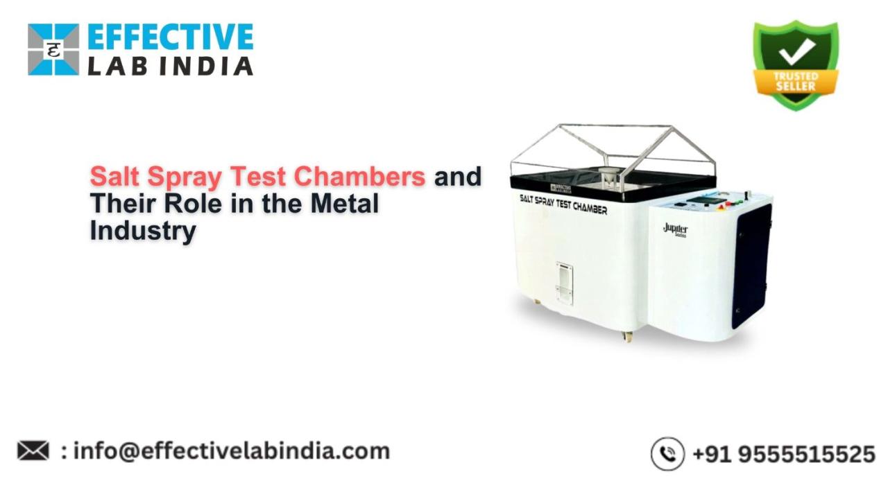 Effective Lab India is a leading salt spray chamber manufacturer, offering high-quality solutions for corrosion testing. Our chambers are designed to simulate harsh, corrosive environments, making them ideal for testing the durability and corrosion resistance of metals and coatings. For more information or to request a quote, please contact us at +91 9555515525 or email us at info@effectivelabindia.com. Visit our website at https://saltspraychamber.com/ for further details on our products and services.