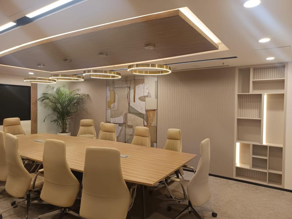Enhanced Acoustic Environment: The installation of PET Acoustic Wall Panels and fiberglass Cloud Ceilings significantly reduced ambient noise, creating a serene and productive environment.