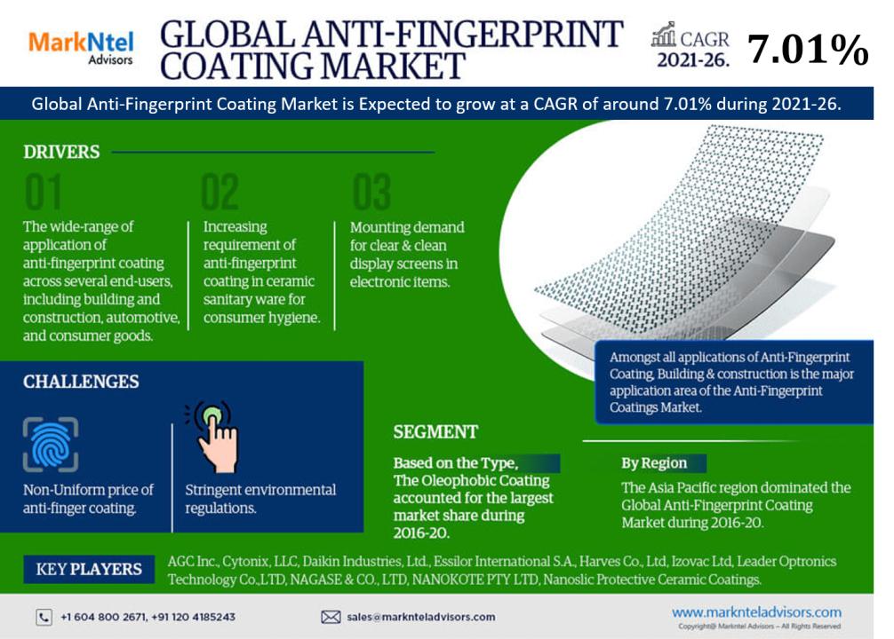 The recent analytical report published by Markntel Advisors (a leading consulting, data analytics, and market research firm), Anti Fingerprint Coatings Market comprises a detailed study of critical and major aspects of market dynamics, i.e. market trends, size, forecasts, growth factors, challenges, and competitor landscape. The research company provides an extensive range of strategic reports on diverse industry verticals to substantial and varied client bases, including multinational corporations, financial institutions, governments, and individuals, among others.