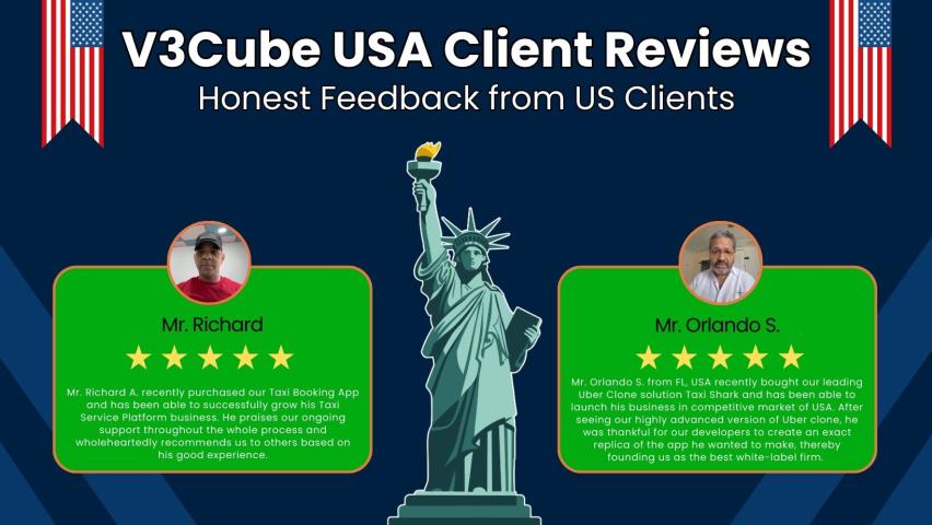 Read genuine reviews from our U.S. clients about their experience with V3Cube’s ready-to-launch on-demand app solutions. Discover why entrepreneurs trust us for quality, reliability, and value before you build your..