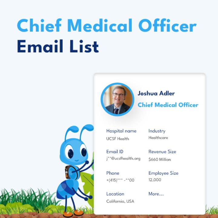 The Chief Medical Officer Email List from DataCaptive connects you with key medical decision-makers across hospitals, healthcare networks, and biotech firms in the USA. Perfect for pharmaceutical, medical device, and healthcare IT marketing, this verified list ensures high engagement.