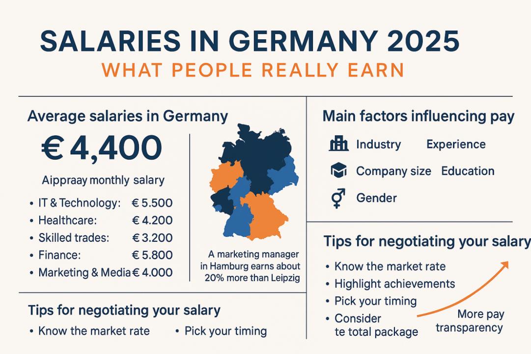 An updated, data-driven overview of average salaries, regional differences, and key factors that shape income in Germany — including tips for negotiating your own pay.