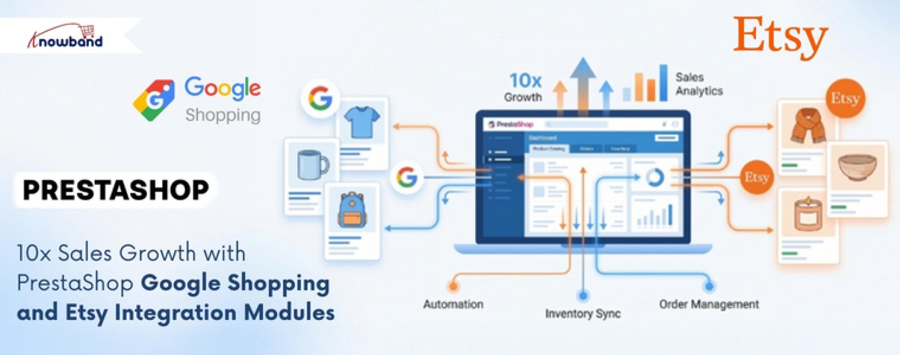Google Shopping reaches buyers who are already searching with purchase intent. Etsy reached 90 million active buyers in 2023, 79% of whom are specifically looking for handmade or unique products. The PrestaShop Google Shopping Integration and the PrestaShop Etsy Integration Module from KnowBand connect a single store to both channels from the same backend.