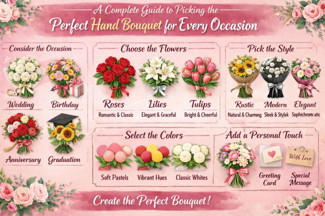 Choosing the perfect hand bouquet doesn’t have to be complicated. By understanding the occasion, flower meanings, colors, and current trends, you can easily select a bouquet that leaves a lasting impression. Whether you want to express love, celebrate a milestone, or simply make someone smile, flowers are always the right choice.