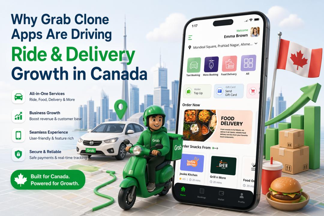 Learn how Grab clone development helps Canadian businesses combine ride-hailing and delivery in one smart super app.