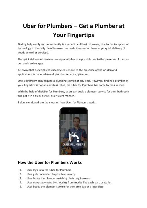 The information below states the reasons how the Uber for Plumbers helps users find a plumber at their fingertips. For more detail visit here: https://bit.ly/2N2p6wQ