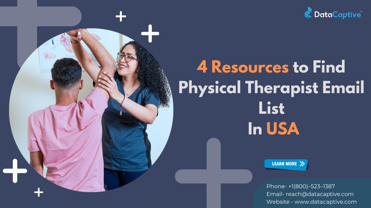 Target licensed physiotherapists and rehabilitation experts with DataCaptive’s Physical Therapist Email List. This verified, opt-in healthcare database helps medical suppliers, software firms, and service providers connect with physical therapy professionals..