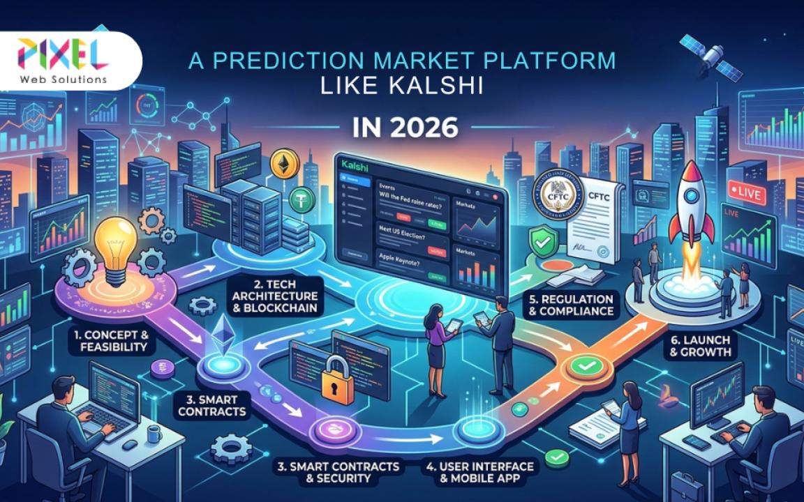 Organizations that want to create these platforms benefit from learning about Kalshi system structure and technology, which provides them with essential information. The company Pixel Web Solutions works with organizations that want to create new financial platforms for upcoming markets, which include prediction trading, because they have expertise in both fintech and blockchain development.